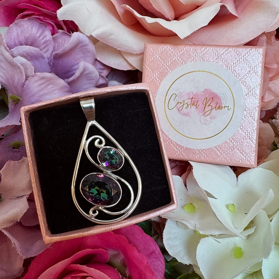 Add a splash of iridescent magic to your style with this stunning Mystic Quartz Pendant, beautifully set in 925 sterling silver. Known for its captivating rainbow shimmer, Mystic Quartz is more than just eye‑catching — it’s a crystal of transformation, positivity and balanced energy.